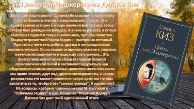 Цветы для Элджернона" Дэниела Киза входят в программу обязательного чтения в американских школах. Это единственная история в жанре научной фантастики, автор которой был дважды награжден, сначала за рассказ, а потом за роман с одним и тем же названием, героем, сюжетом. Тридцатитрехлетний Чарли Гордон – умственно отсталый. При этом у него есть работа, друзья и непреодолимое желание учиться. Он соглашается принять участие в опасном научном эксперименте в надежде стать умным… Эта фантастическая история обладает поразительной психологической силой и заставляет задуматься над общечеловеческими вопросами нравственности: имеем ли мы право ставить друг над другом эксперименты, к каким результатам это может привести и какую цену мы готовы заплатить за то, чтобы стать "самым умным". А одиноким? На вопросы, которые поднимали еще М. Булгаков в "Собачьем сердце" и Дж. Лондон в "Мартине Идене", Дэниел Киз дает свой однозначный ответ.